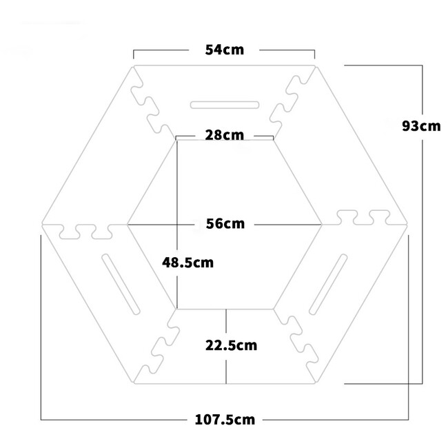 BLACK HEXATABLE(ブラックヘキサテーブル)の特徴として、安定性向上のために独自開発した安定接合板パーツが付属しています。