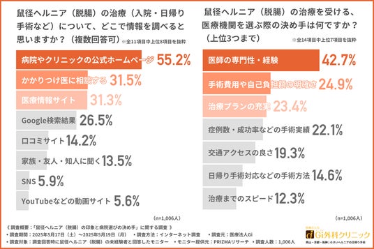 調査概要:「鼠径ヘルニア(脱腸)の印象と病院選びの決め手」に関する調査