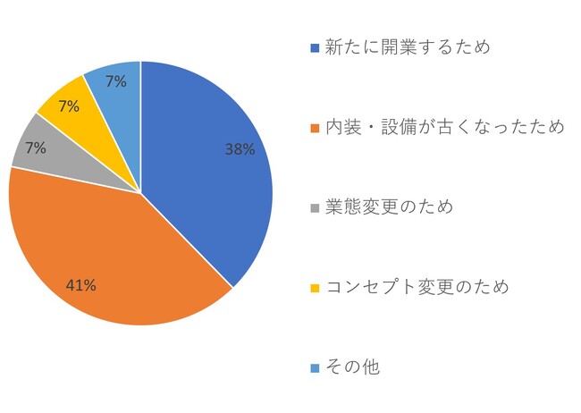 同様に【300~500万円】の回答でも、「内装・設備が古くなったため」が41パーセント、「新たに開業するため」が38パーセントとなり、多くの票が集まっています。このように、【~300万円】と【300~500万円】の回答には類似点が確認できます。