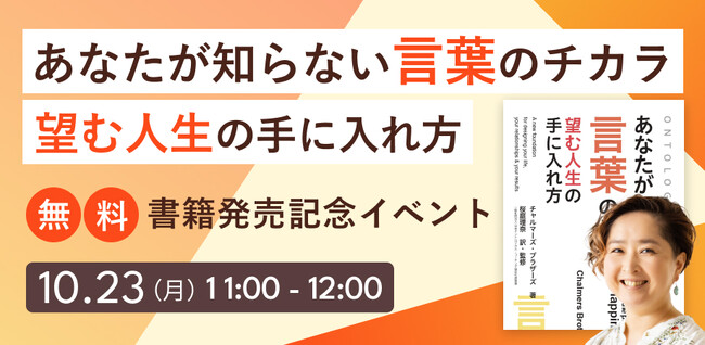 2023年10月23日(月)に、一般社団法人日本オントロジカル・コーチング協会代表理事である桜庭理奈が訳者・監修者を務めた書籍「あなたが知らない言葉のチカラ 望む人生の手に入れ方」の出版記念イベントを開催します。