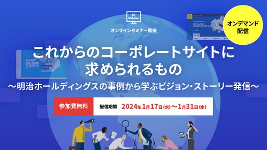 株式会社ブレーンセンター(大阪市北区、代表取締役:稲田紀男)は、2024年1月17日(水)~31日(水)、Webサイトの企画・運営、IR・サステナビリティ情報の発信、ブランディング戦略の立案などを企業内でご担当されている方々を対象として、コーポレートサイトにおけるビジョン・ストーリー発信のトレンド・事例を紹介するオンデマンドウェビナーを開催します。