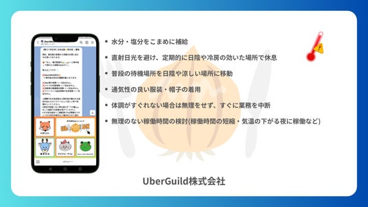 フードデリバリー配達員向けの労災保険特別加入サービス「UberONIONギグワーク労災」を運営するUberGuild株式会社(代表取締役 山下 卓人)は、全国的な猛暑を受けて、労災ホットラインによる熱中症関連情報の注意喚起・情報提供を強化しました。