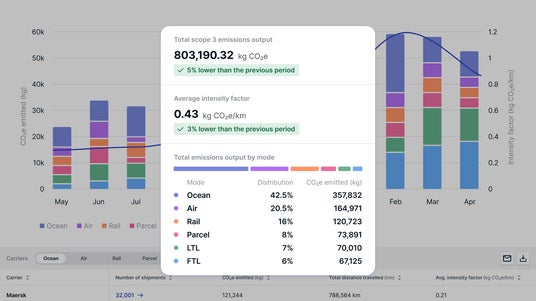 マルチモーダル対応の新しい排出量測定機能が、荷主およびLSP(ロジスティクス・サービス・プロバイダ)が Scope 3 排出量を測定・報告し、ESG目標を達成できるよう支援