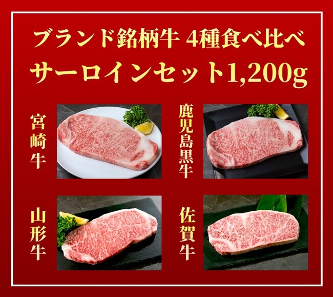 4種類のブランド銘柄サーロインが一度に手に入る滅多にないチャンスとなります。