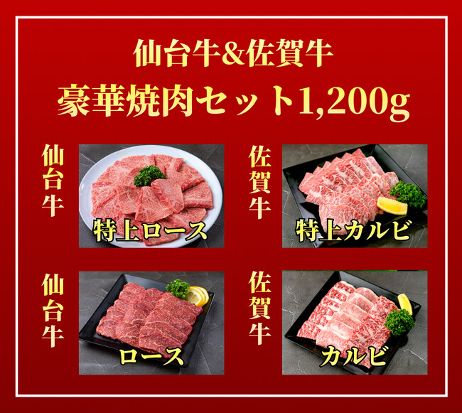 仙台牛&佐賀牛 豪華焼肉セット(仙台牛特上ロース/仙台牛ロース/佐賀牛特上カルビ/佐賀牛カルビ)