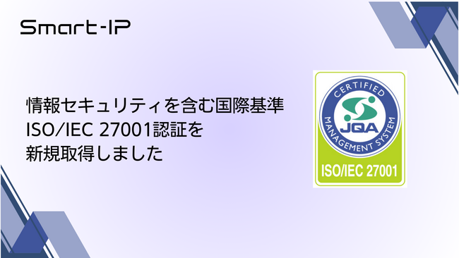知財業界の業務スタイルをDXでアップデートするサービスを展開していくSmart-IP株式会社(本社:東京都港区、代表取締役兼CEO:湯浅竜)は、2023年11月17日付で、情報セキュリティマネジメントシステムに関する国際規格である「ISO/IEC 27001」の認証を取得しました。