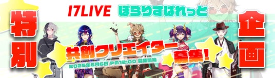 日本最大級のライブ配信アプリ「17LIVE(イチナナ)」を運営する17LIVE株式会社と、コンテンツクリエイターのためのプラットフォーム「ForCreators」を運営するForCreators株式会社は、このたび、17LIVE株式会社と株式会社N Craft.が運営するVライバープロダクション「ぽらりすぱれっと」所属Vライバーのためのビジュアルを共創する特別企画『「ぽらりすぱれっと」新人Vライバー ビジュアル共創クリエイター公募イベント』を実施いたします。