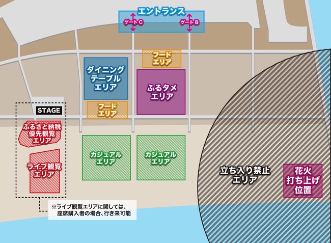 ■ライブ観覧エリア:カジュアルエリア・ふるタメエリア・ダイニングテーブルエリアにお申込みいただいた方であれば自由に入場可能となります