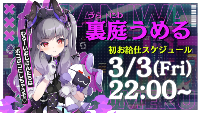 株式会社TAKE1(本社:東京都中野区、代表取締役:松田純治)は、この度、2.5次元VTuberグループ『こねくとぴあ』の2期生キャストとなる「裏庭うめる」が2月23日(木)よりデビュー、3月3日(金)22:00より初配信を実施することをお知らせいたします。