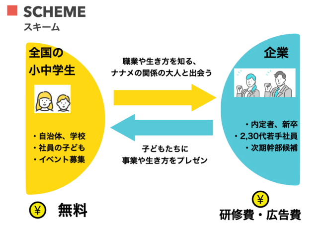 「100 will,100 cheers!100のワクワクに、100の応援を。」をミッションに掲げ、小学生向けに本物のキャリア教育と企業向けに人材研修を掛け合わせた独自のプログラムを提供。