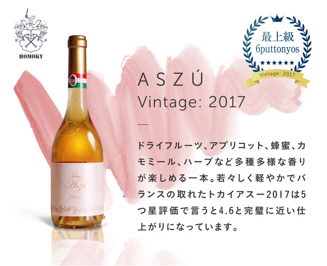トカイワインが造られるトカイ地方は貴腐ワインの発祥の地と言われております。トカイワインはハンガリー固有種の「フルミント」という葡萄を使っています。この品種から生まれるワインは、ワイン大国であるフランスの王から「ワインの王であり王のワイン」と賞賛される上質なもの。トカイワインを生み出す品種はサモロドニ、アスー、エッセンシアの3種類です。この度は、本来高価な貴腐ワインを手が届きやすい価格で特別なルートから入手、貴腐ワインを2種とスイートワインを1種の極上な甘口ワインをMakuakeにて先行発売しております。