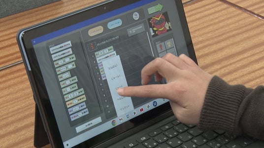 「プログラマッピング」は小学生を対象としたプログラミングの楽しさを体験・学習できる映像制作アプリです。 プロジェクターで投影する対象とストーリーを考え、投影するアニメーションをプログラムで作成します。プロジェクターの投影の位置や内容を調整し、作品を完成させることで、子供たちの「プログラミング思考」を育むことができます。