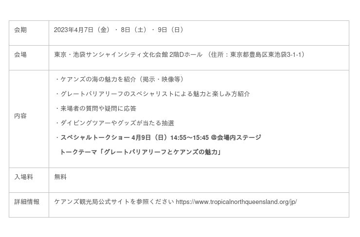 ケアンズ観光局『マリンダイビングフェア2023』 出展概要