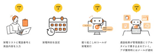 人の代わりにAIが掘り起こしの架電を行うサービスです。