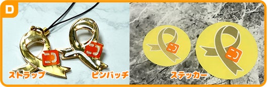 にこスマ九州ではピンバッチやストラップ、ステッカーなどゴールドリボンのチャリティーグッズをご用意しています。