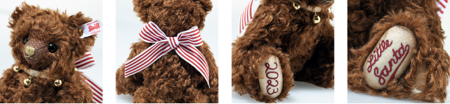 昨年のNoelはあどけない表情で誕生したばかりのベアとして印象的でしたが、本年のBellはダークブラウンの少し長めカーリーヘアでマズルも刈り込まれており少し大人っぽくクラシックな雰囲気が漂います。