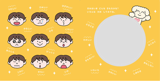 本書には、遊べるミラーシートのしかけがついています。絵本を読んだ後は、いろいろな気持ちの表情を想像しながらミラーシートをのぞいてみてください。表情を読み取る練習のきっかけとして「これはどんな気持ちの顔かな?」とクイズ形式すると盛り上がるかもしれません。親子での読み聞かせだけではなく、幼稚園、保育園でもご活用いただけます。