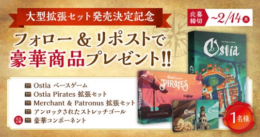 本日より、Ostia Pirates発売決定を記念し、Ostia基本セットとOstia Pirates、その他豪華コンポーネントのセットが1名様に当たるXリポストキャンペーンを公式X(@uchibacoya)上で開催いたします。