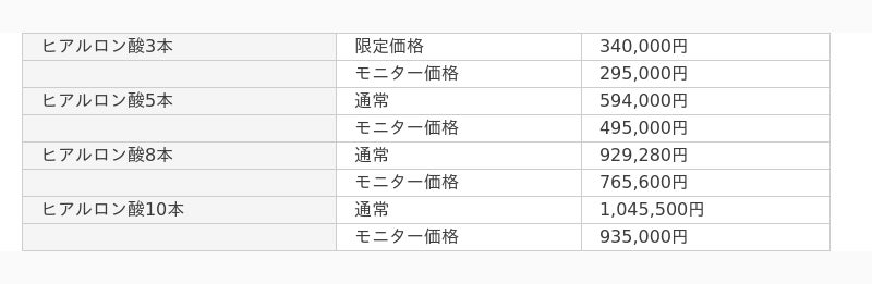 ◆ ザロク式似合わせヒアルロン酸(R) 料金表