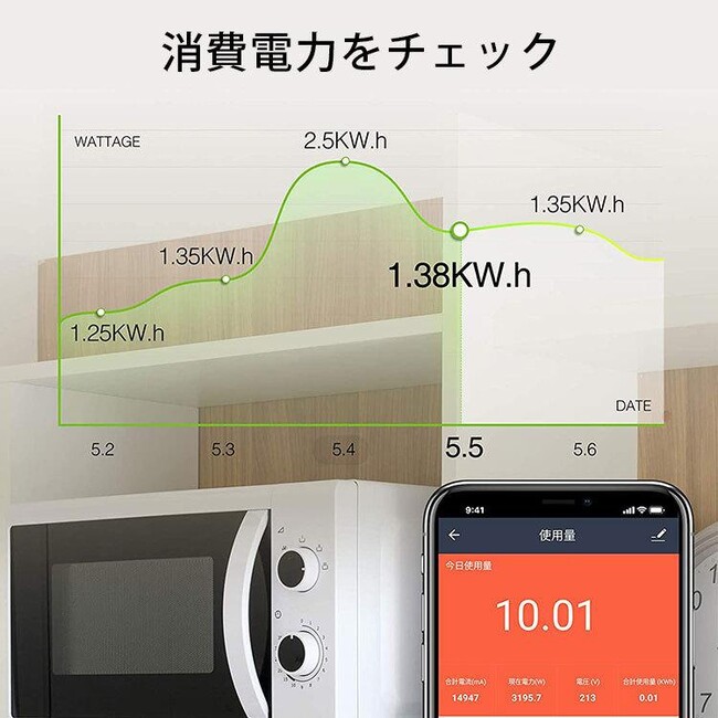 Gosundアプリで、家電が消費する電力をリアルタイムで確認できます。