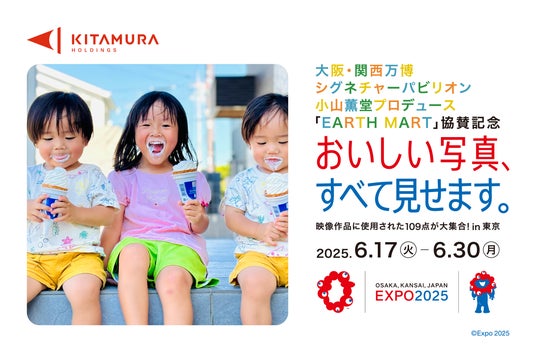 株式会社キタムラ・ホールディングス(本社:東京都新宿区、代表取締役 社長執行役員 CEO:福本 和宏)は、2025年6月17日(火)~2025年6月30日(月)の期間、 株式会社カメラのキタムラ 新宿 北村写真機店 地下1Fベースメントギャラリーにて、「大阪・関西万博シグネチャーパビリオン 小山薫堂プロデュース『EARTH MART』協賛記念 おいしい写真、すべて見せます。映像作品に採用された109点が大集合!in 東京」を開催いたします。この写真展では、EARTH MART内の映像作品に使用された109点の写真を一挙に展示する他、人気建築写真家 イケダ氏(https://www.instagram.com/casarchiphoto/?g=5)が撮影した開幕中の大阪・関西万博の様子やEARTH MARTのパビリオン内の写真を展示いたします。