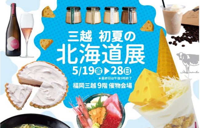 福岡三越にて『初夏の北海道展』を開催いたします。「酪農王国」北海道のミルクや乳製品、また、それらを贅沢に使用したベーカリーやスイーツをはじめ、北海道の海の幸有数の水揚げ地「枝幸(えさし)町」から、ホタテやカニを使ったここでしか味わえないラーメン、スープカレー、現地でも大人気のカニ飯まで!さらに毎回好評の海鮮弁当特集や、SNSで話題の初登場スイーツ、北海道の定番グルメ、新鮮な海の幸・大地の恵みなど盛りだくさん。