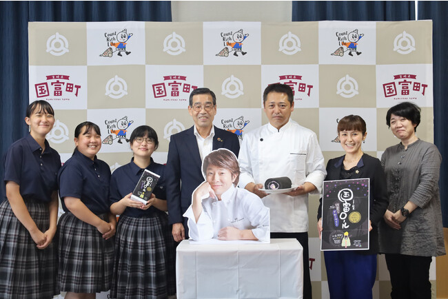 ブルーベリーには川越シェフの出身校である宮崎県立本庄高等学校の同好会「チームブルーベリー」の皆様が、先輩から代々受け継いできたブルーベリーピューレのレシピが使用されます。さらに国富町の古刹「法華嶽薬師寺」に伝わる和泉式部伝説をイメージしたパッケージデザインは、町内在住のデザイナーであり同校の卒業生でもある日高久留美様によるものです。