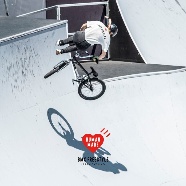 「競技服としての固定概念を壊し、機能先行ではなく選手自身が本当にかっこいいと思うスタイルで、モチベーション高く競技に望めるようにしたい。そしてファッションを含めた選手の個性を通じ、新しいカルチャーを発信することこそがBMXフリースタイルがスポーツとして目指すことである」という競技に対する姿勢と理念に共感し、この度、HUMAN MADE株式会社はウエアのサポートを決定しました。同じくストリートにルーツを持ち、新たなカルチャーを生む起爆剤となることを目指すHUMAN MADEとして、日本代表チームをサポートしていきます。