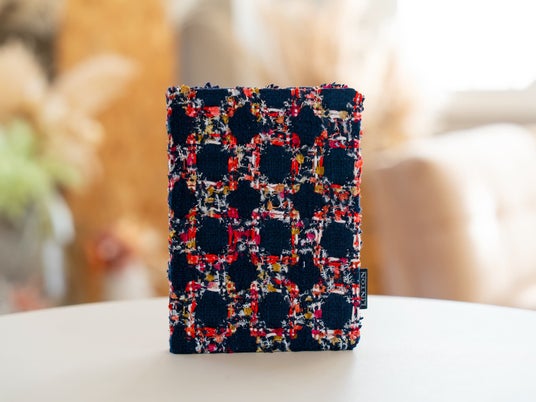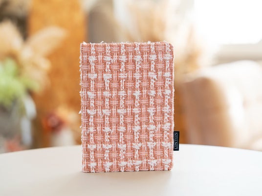 本商品は、日本製のハードカバー(上製本)仕様のノートです。生地加工から製本まで国内で行い、糸かがり綴じによる堅牢な造りと、ツイード特有の立体感ある表情を両立させました。