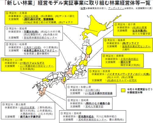 林野庁「新しい林業」経営モデル実証 令和6年度採択事業者一覧
