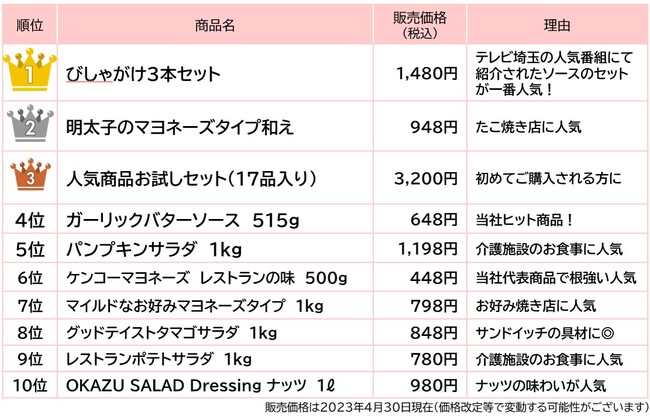 日頃から当社オンラインショップをご利用いただきありがとうございます。このたび、ケンコーマヨネーズ株式会社(東京本社:東京都杉並区、代表取締役社長:炭井孝志)の2022年度当社オンラインショップ売れ筋ランキングを1位から10位までご紹介します。