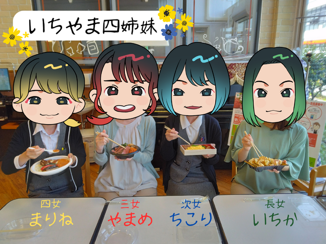 美味マガジンでは、いちやまマートの広報担当【いちやま四姉妹】のいちか、ちこり、やまめ、まりねの4名で一足お先に全品を試食。率直な感想を交わしながらお味をご紹介するので、投票の参考にしてください。