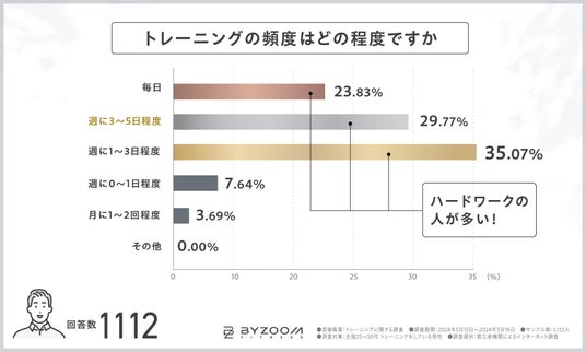 【調査概要】トレーニングに関する調査【調査期間】2024年5月15日~5月16日【調査方法】第三者機関によるインターネット調査【調査人数】1,112人【調査対象】全国25~50代 トレーニングをしている男性
