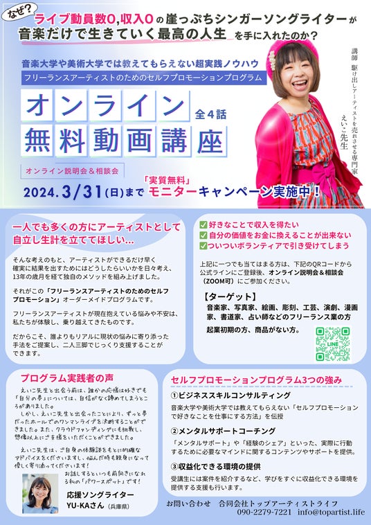 ・駆け出しのアーティストを売れさせる専門家として、「セルフプロモーションプログラム」を発案&リリース。