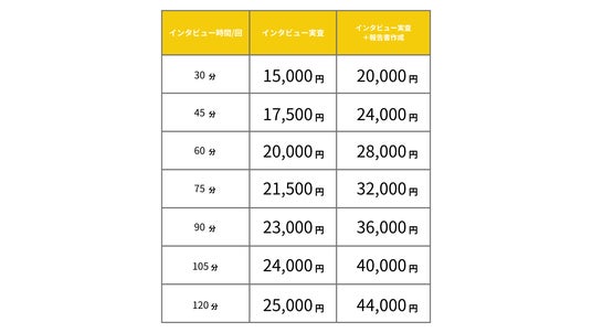 ※2 法人様による利用かつ、インタビューを2回以上ご依頼いただく場合に限ります。報告書サービスの有無、インタビュー実施時間は問いません。