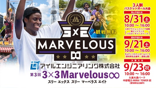 この度、Back Dooor株式会社(バックドア 所在地 : 名古屋市中村区 代表取締役社長 馬瓜エブリン)は、3人制バスケットボールの大会イベント「3×3Marvelous∞」(スリー エックス スリー マーヘ゛ラス エイト)を以下の通り開催いたします。