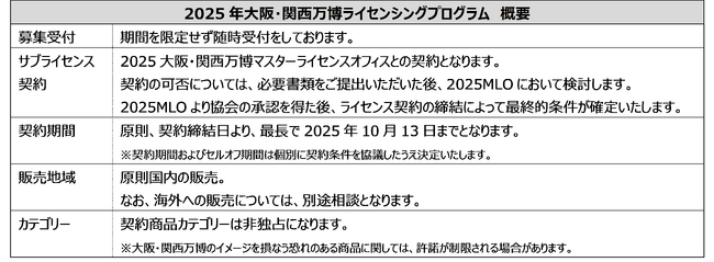 2025年大阪・関西万博ライセンシングプログラムの詳細については下記をご参照ください。
