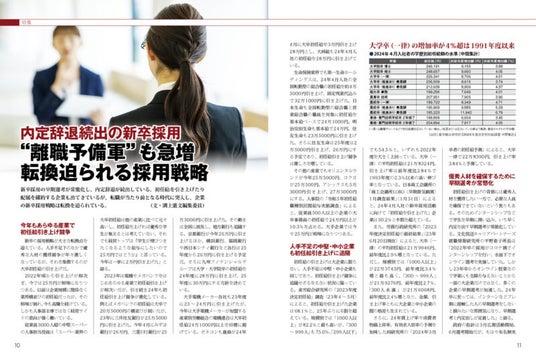 今回は新卒採用をテーマとして取り上げており、本誌では、「内定辞退続出の新卒採用~"離職予備軍"も急増 転換迫られる採用戦略」、「26年卒の採用計画達成へ~採用手法の最新トレンド」を特集。