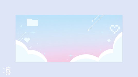 水色とピンクのグラデーションベースで白色の雲や、ゲームらしいドットで描かれたハートが特徴です。