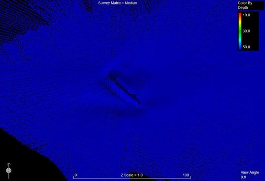 マルチビームのデータと照らし合わせた結果、巨大な沈没船と特定することができました。