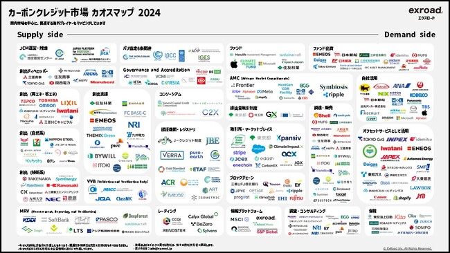 カーボンクレジット・排出量取引制度についてのオールインワン情報サービスを提供する株式会社ExRoad(エクスロード、本社:東京都港区、代表取締役:木村圭佑)は、本市場において関連するプレイヤーを整理・分類した「カーボンクレジット市場カオスマップ2024」を公開いたしましたことをお知らせします。