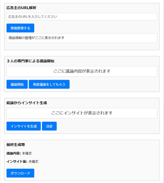 哲学・心理学・マーケティングの知見を組み合わせた仮想専門家を作り、AI上で議論をさせるプロトタイプを開発しました。