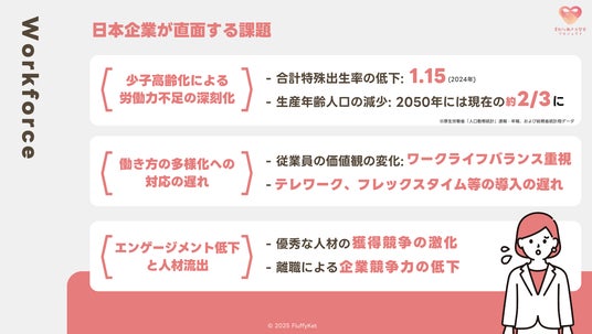 日本では現在、少子化による将来の労働力減少や、育児と仕事の両立に悩む家庭の増加といった深刻な社会課題に直面しています。