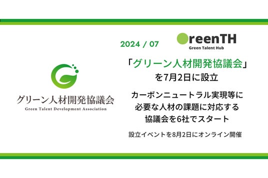 なお、団体設立を記念し、「グリーン人材開発協議会設立イベント」を2024年8月2日にオンラインにて開催いたします。