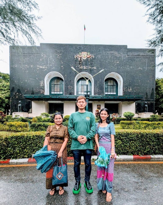 ヤンゴン大学の学生と写真中央:小林 祐喜