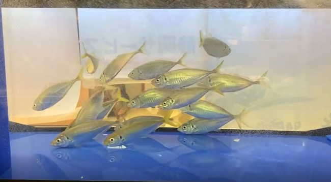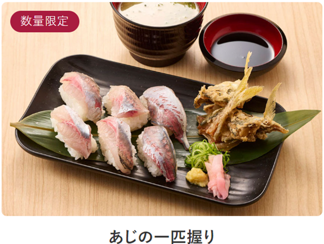 鯵(あじ)が泳いでいる姿を見ることができます。活きのいい新鮮な鯵(あじ)のお造り・握りが楽しめます。(数量限定)。お子様からの注目度もまちがいなし!!