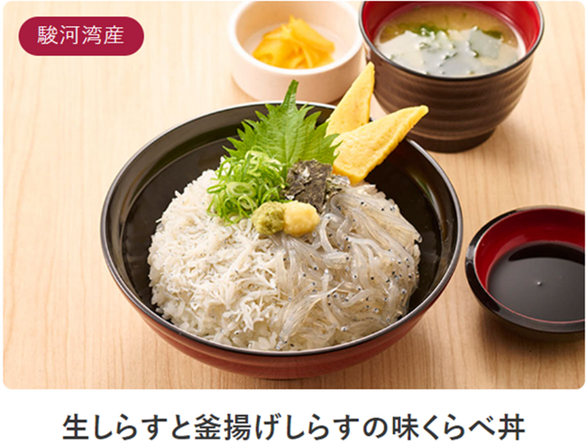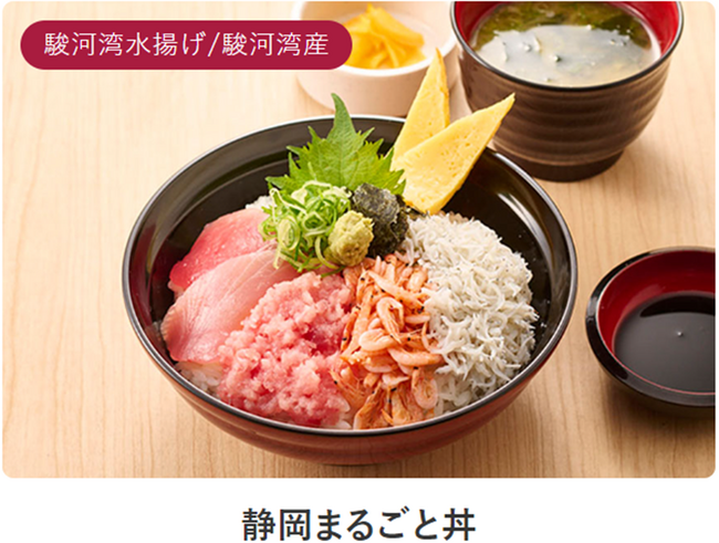 駿河湾産の「桜海老」「しらす」駿河湾産水揚げ「まぐろ」「ねぎとろ」を使用した静岡をまるごと味わえる丼ぶり。1,380円(税込)