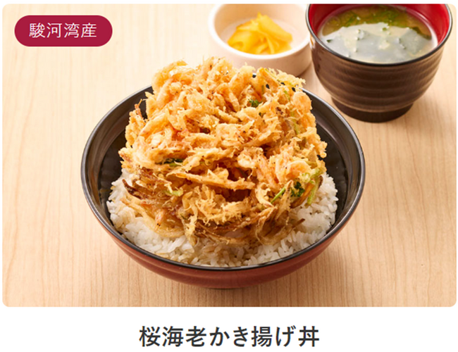 ご飯が隠れるほど、駿河湾産桜海老をたっぷり使ったかきあげ丼。1,380円(税込)