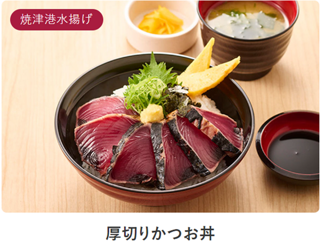 焼津港水揚げかつおを使用した食べ応え満点の厚切りかつお丼。1,380円(税込)