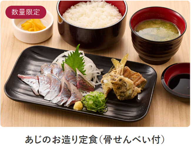 コリコリ食感とあじの旨みを感じるあじ好きのための定食。1,300円(税込)